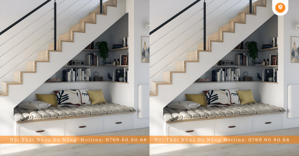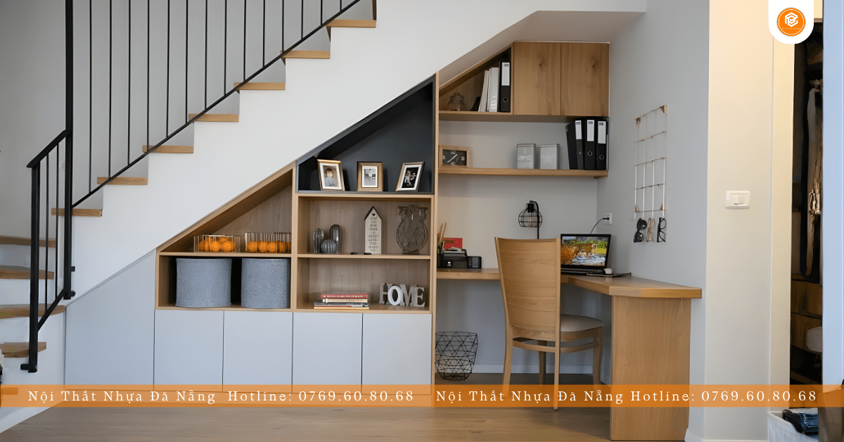 Đừng để không gian vàng dưới gầm cầu thang bị lãng phí. Hãy biến nó thành điểm nhấn ấn tượng, gọn gàng và tiện nghi. Liên hệ ngay với Nội Thất Nhựa Đà Nẵng để không gian nhà mình không bị lãng phí nha.